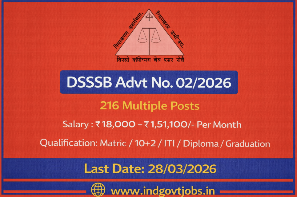 The Delhi Subordinate Services Selection Board (DSSSB) has released Advt No. 02/2026, inviting applications for 216 Group B and Group C posts. If you are looking for stable Government Jobz in Delhi, this is a prime opportunity for Graduates, Post Graduates, and Diploma holders.