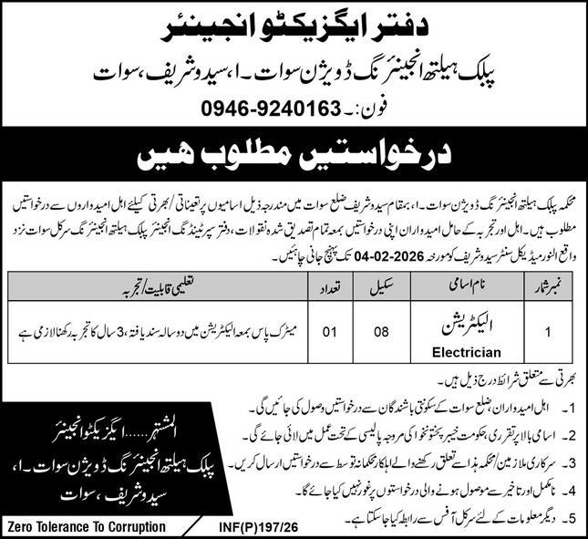- Submit the application package by hand or post to the Office of the Executive Engineer, Public Health Engineering Division Swat.