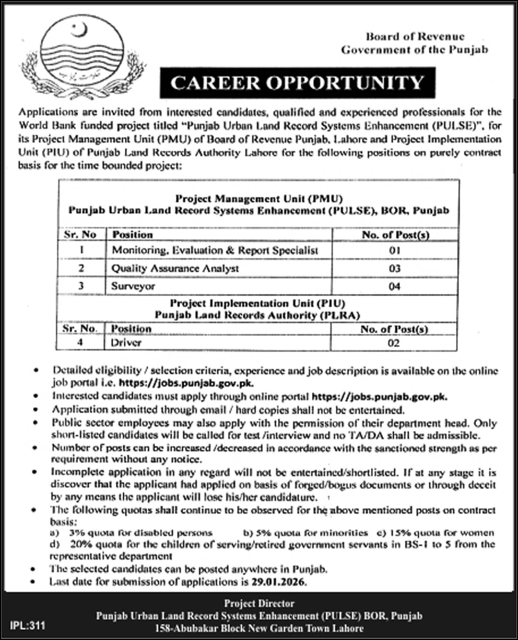 Always choose Government Jobz for the fastest alerts on upcoming Government Jobz and career opportunities in Lahore.