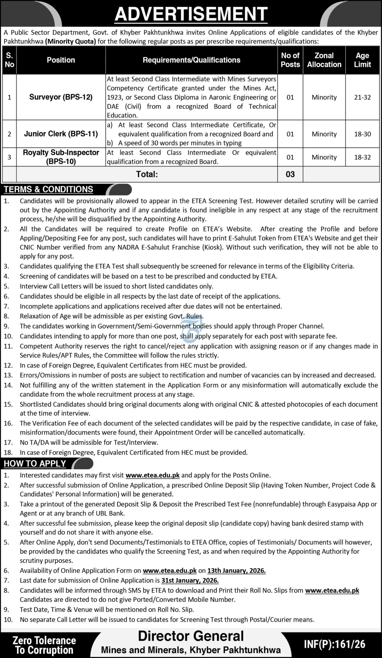 Interested individuals should review the official advertisement carefully to ensure they meet all departmental requirements. Applications must be submitted by January 31, 2026. For the latest application forms and official procedures, visit Government Jobz frequently. You can also find more relevant provincial listings on our KPK Jobs Section or visit the Official KPK Minerals Department Website.