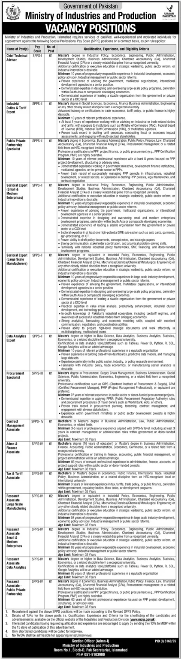 Ministry of Industries and Production Islamabad Jobs 2026