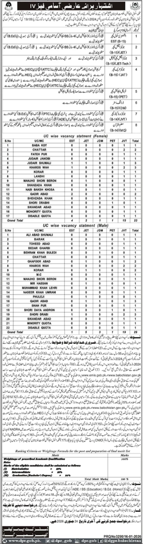 The School Education Department of Balochistan has announced a recruitment drive for various teaching and management-related educational posts in Naseerabad. As per the advertisement published in the Daily Jang on January 17, 2026, the department is seeking qualified individuals to fill multiple specialized roles to improve the educational standard in the region.