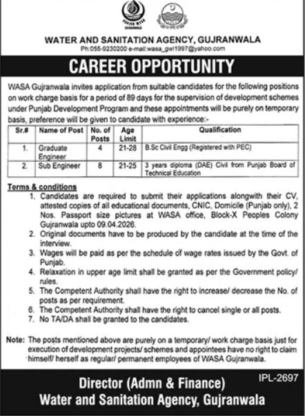 Water and Sanitation Agency WASA Gujranwala Jobs 2026